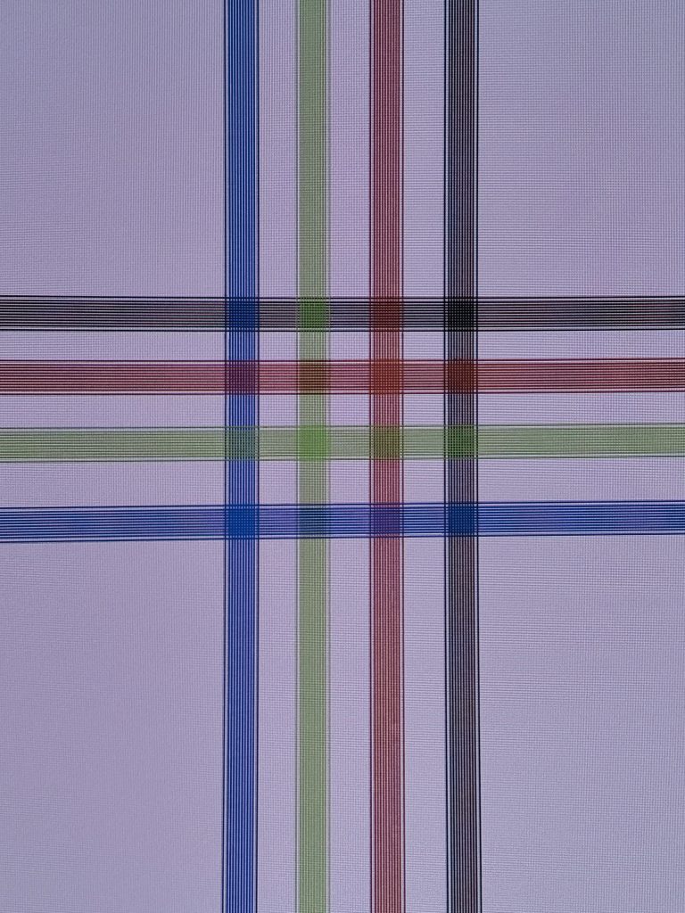 Gros point fort pour cet Aetherion Max, et une bonne nouvelle d'entrée de jeu. Le premier test que je réalise systématiquement sur tout projecteur revendiquant la 4K est la projection de ma mire de résolution dédiée. Cette mire contient des lignes colorées verticales et horizontales qui, pour valider la restitution effective de la résolution 4K, doivent impérativement apparaître à l'écran avec un liseré blanc de séparation bien défini entre chaque ligne signe que le projecteur restitue bien chaque pixel individuellement sans les fusionner. C'est bien le cas ici, et sans la moindre ambiguïté. Mieux encore, les plus petits éléments contenus dans les blocs centraux d'une seconde mire 4K d'overscan sont eux aussi parfaitement restitués ce qui est loin d'être systématique sur un projecteur DLP à pixel shifting XPR, où ces détails fins ont tendance à se perdre dans le processus de décalage de pixels. Sur ce point, AWOL tient ses promesses haut la main.
