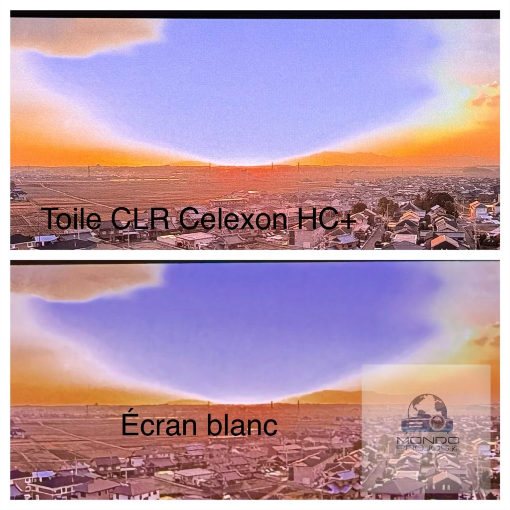 Concernant l'Aetherion Max, les résultats sont contrastés selon le type de surface utilisée. J'effectue la totalité de mes tests et mesures sur le même écran blanc à comportement lambertien, c'est-à-dire une surface qui diffuse la lumière de manière parfaitement uniforme dans toutes les directions, sans privilégier aucun angle de vision. Sur cette toile, l'image de l'Aetherion Max présente un beau lissé, comme vous pouvez le constater sur le montage vidéo ci-dessous. En revanche, dès que l'on bascule sur une toile technique CLR, une toile à rejet de lumière ambiante conçue spécifiquement pour les projecteurs UST la situation se dégrade sensiblement. J'ai pu tester deux références représentatives de ce type de surface : la Celexon HC+ et la Black Series de Nothing Projector, toutes deux conçues pour les ultra courtes focales avec un gain annoncé de 0,6. Sur ces deux toiles, le beau lissé observé sur la surface blanche n'est plus qu'un lointain souvenir : le speckle apparaît clairement et vient perturber le confort visuel de manière significative.